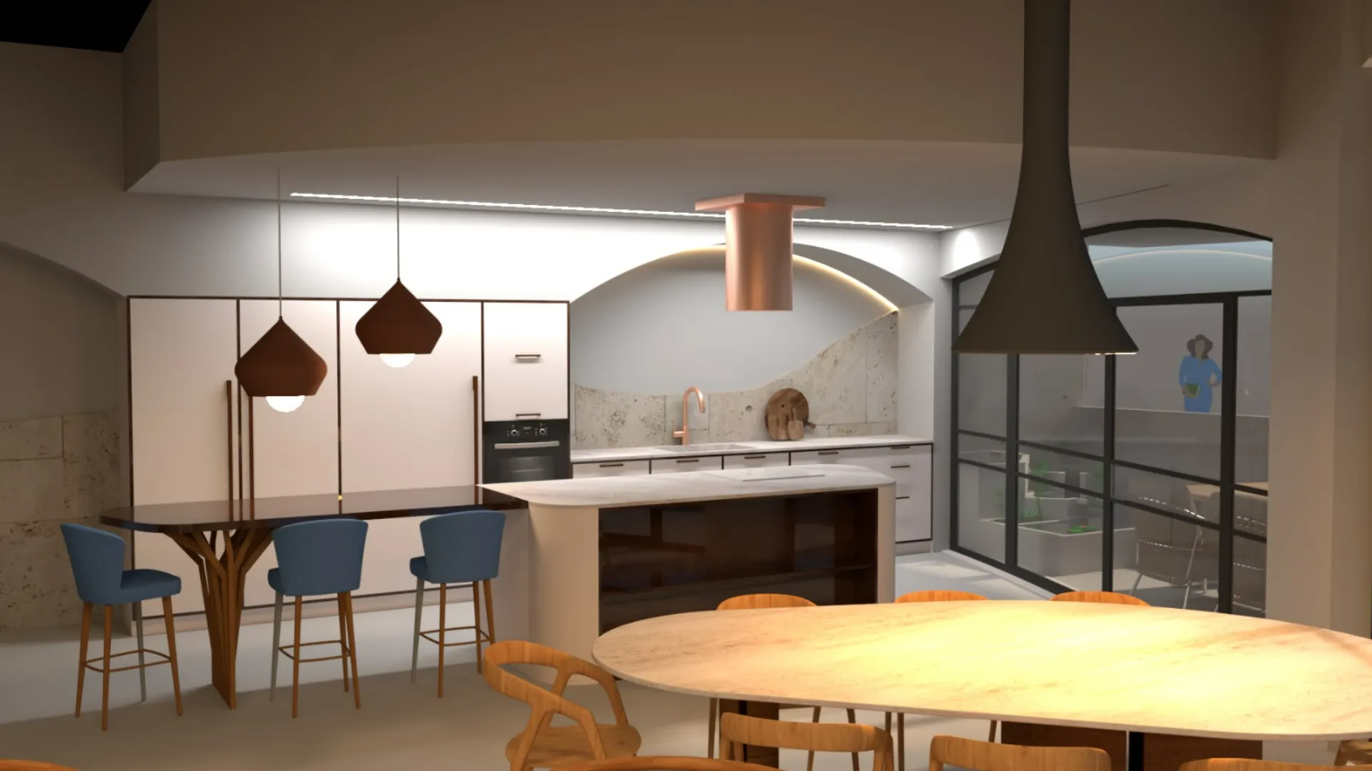 "אני רוצה שהבית יהיה בעיצוב ים תיכוני" – זו בעצם הייתה אחת ההגדרות המרכזיות של הלקוח. כשהסברתי לו שים תיכוני זה הגדרה מאוד כללית, ושיש הרבה סגנונות סביב הים התיכון – הוא ביקש שאפתיע אותו. בנוסף הוא התעקש שהוא לא מעוניין בעיצוב מודרני, ושיהיה לבית אופי מעניין ושונה מהרגיל. בנוסף, מכיוון שהיה לנו פוטנציאל לבניית שלוש קומות, הלקוח ביקש לבנות ללא חדרים. קומה אחת לאירוח, קומה אחת לחדר שינה ועבודה וקומה אחת עבור אורחים (בעיקר הבנות שלו) שיישארו לישון.